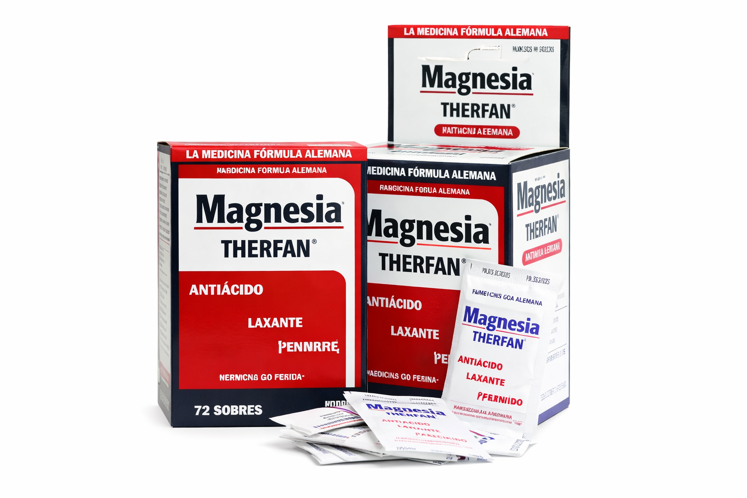 Magnesia Therfan 72 sobres es un producto ampliamente distribuido en farmacias y comercios del sector salud, reconocido por su práctica presentación en sobres individuales.